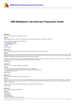 Reading Online WEBSPHERE PROCESS SERVER INTERVIEW QUESTIONS AND ANSWERS iBooks ManyBooks